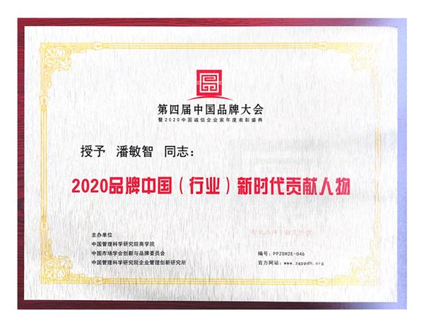 2020-12-14祝賀潘董榮為2020品牌中國(行業(yè))新時代貢獻人物